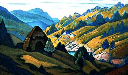 Das Nicholas Roerich Porträt auf den Hintergrung L