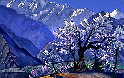 Портрет Н. К. Рериха на фоне Лхассы