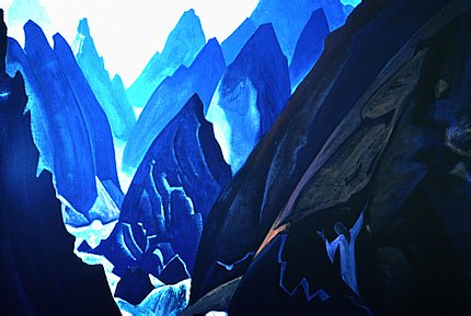 Das Nicholas Roerich Porträt auf den Hintergrung L