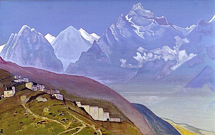 Nicholas Roerich neben dem Guga Chochan Denkmal