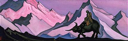 Портрет Н. К. Рериха на фоне Лхассы