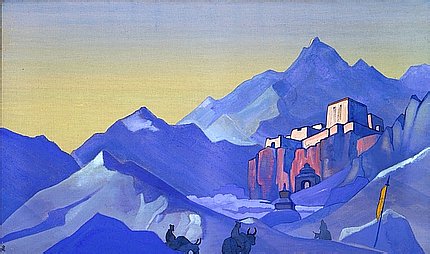 Das Nicholas Roerich Porträt auf den Hintergrung L